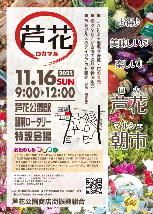 2025年11月16日(日) 9:00~12:00 芦花公園駅 駅前ロータリー特設会場